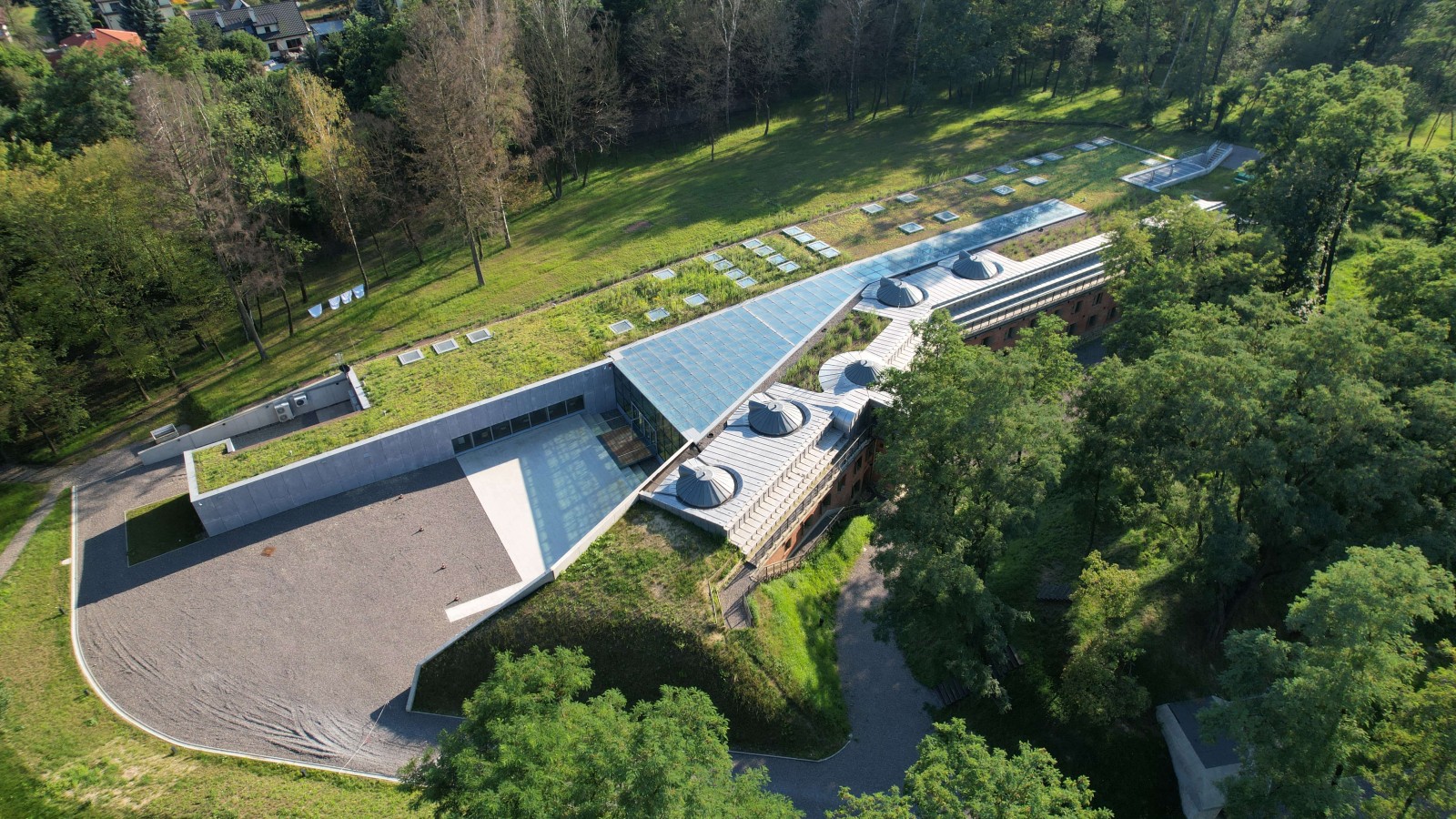 By nie zakłócać historycznego układu fortu, nowe pomieszczenia zostały umieszczone pod ziemią i częściowo przykryte zielonym, a częściowo szklanym dachem. Takie rozwiązanie wymagało jednak specjalnego systemu odprowadzania wody deszczowej z dachu. Do projektu wybrano system grawitacyjny odwodnienia dachu firmy Geberit, która już od dziesięcioleci wyznacza nowe standardy w zakresie odprowadzania wody deszczowej. To rozwiązanie, które sprawdza się wtedy, gdy wielkość zlewni jest za mała, a tym samym ilość wody nie jest w stanie wypełnić systemu. Wykonanie bezpiecznego systemu odwodnienia dachu gwarantują tu wysokiej klasy konwencjonalne wpusty dachowe, które są szczelnie łączone z hydroizolacją. Dedykowane są one również do dachu zielonego i odwróconego, dzięki czemu doskonale odnalazły się w projekcie. Dodatkowym atutem był fakt, że proponowane metody odwodnienia Geberit są kompleksowe, a ich dobór do sytuacji budowlanej niezwykle prosty.